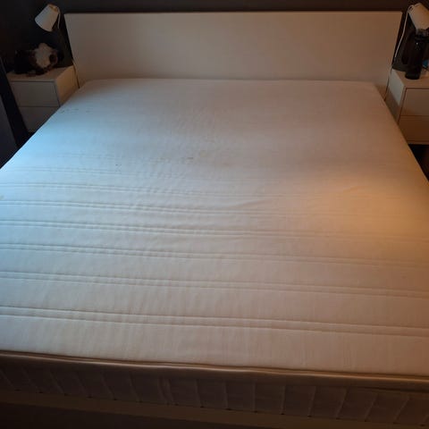 Dubbelsäng inklusive gavel, ribbotten, resårbottnar samt Wellpur bäddmadrass