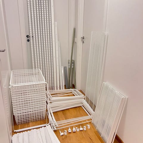 Startkitt hyllsystem med trådbackar. 4st trådbackar sitter i.