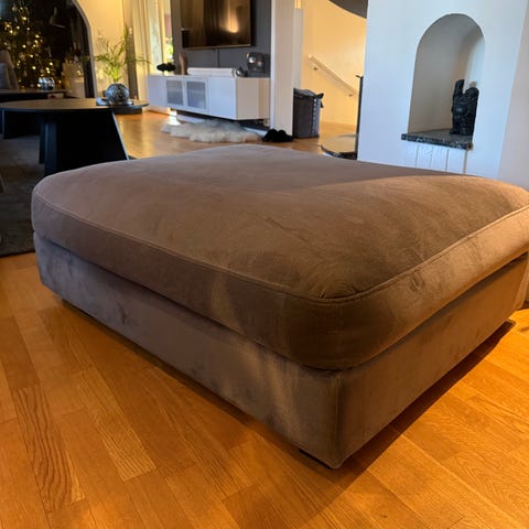 En stor sittpuff säljes. Se bilder för att själv avgöra skicket. Tyget är avtagbart och vi har tvättat det. En fläck kvarstod dock dom på bild. Det finns flera lite dovare fläckar kvar, syns mer eller mindre beroende på ljuset.