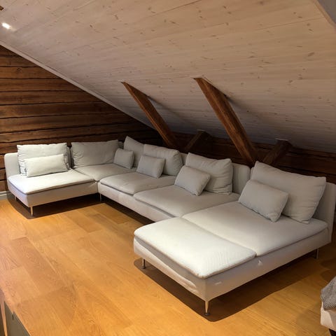 Söderhamn soffa från IKEA i bra skick. Går att ha som hörnsoffa eller ställa på rad. Mörkgrå färg som utgått ur sortimentet. Dock lätt att köpa nytt tyg och byta ut. Tyget är därav avtagbart och kan tvättas.