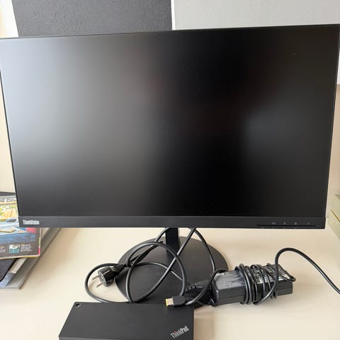 Lenovo ThinkVision P27h-20 bildskärm med en skärmstorlek på 27 tum. Skärmen har en justerbar stativlösning och anslutningar för strömkabel och dataöverföring. Designad för användning i kontorsmiljö eller hemmakontor.