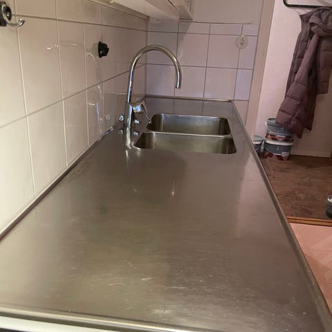 Bänkskivan passar perfekt till kök, gillestuga, sommarstuga, tvättstuga, studentlägenhet eller som avlastnings- eller enkel arbetsbänk. Bänkskivan är helt ny i original emballage, inga repor, frakt- eller fuktskador. Diskhon är i rostfritt stål och har en modern, stilren design. Du har cirka 60 x 60 cm och 60 x 70 cm yta på varsida av diskhon. Du kan justera så det passar med till exempel diskmaskin, källsortering och övrig interiör/inredning i ditt byggprojekt.