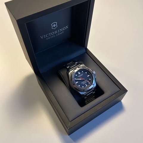 Ingår: oanvänt orginal Luminox läderarmband i mörkare brunt, låda med tillhörande böcker, garantikort.