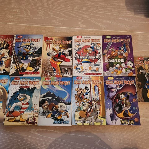 Kalle Ankas Pocket bokpaket med flera volymer. Böckerna är samlingar av Kalle Anka-serier i pocketformat. Innehåller olika titlar och volymer med klassiska Kalle Anka-berättelser.
