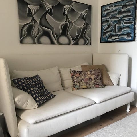 Den vita klädseln (se bilder) är påverkad av våra katter men annars är allt helt.