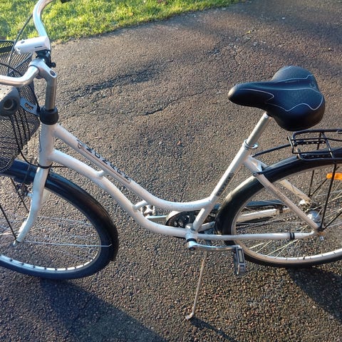 Monark cykel. Cykeln är blå och utrustad med korg fram och pakethållare bak. Passar för allmän användning och dagligt pendlande. Storlek 28, inga dolda fel.
