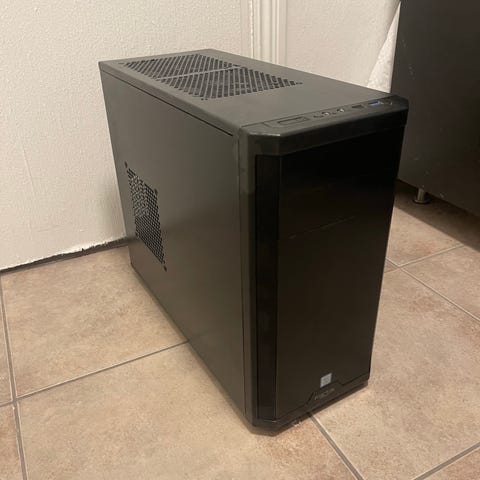Säljer en mycket fin Asus stationär dator med stilrent chassi och RGB-belysning. Chassit har transparent sidopanel som visar upp komponenterna och de RGB-belysta fläktarna, vilket ger ett modernt och gaminginspirerat intryck.