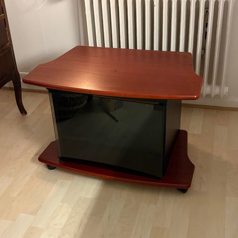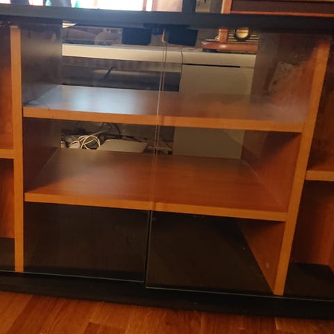 Bra stereobänk o bra skick med glasdörr ,hjul behöver smörjas
