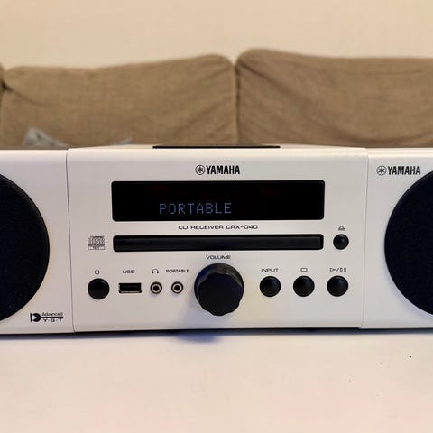 Kompakt Hi-Fi system med CD-spelare, FM/AM-radio och ingångar för externa ljudkällor som AUX (RCA), TAPE/MD.