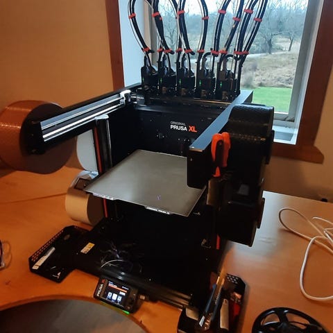 Bambu Lab P1P Mini 3D-skrivare med kompakt design och transparent överdel, utrustad med pekskärm och inbyggd kamera för övervakning av utskriftsprocessen.