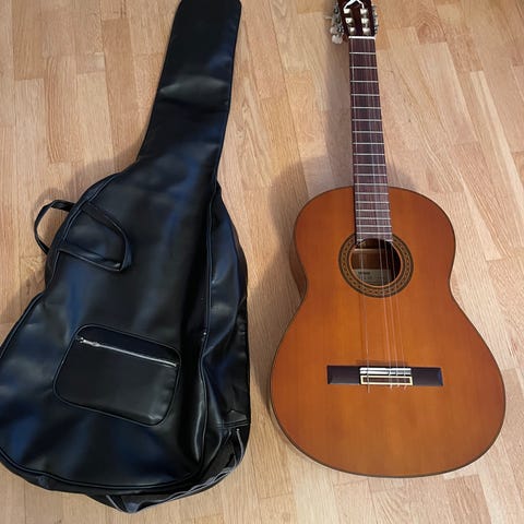 Yamaha G-231 II akustisk gitarr med träfinish. Gitarren har en klassisk design och levereras med ett hårt fodral.