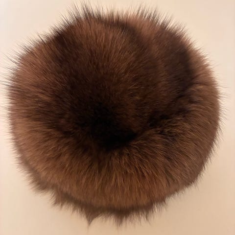 Vintage pälshatt från 50-talet (Pelzmode, Tyskland). Med ett elegant pompom och fodrad med satin. Tillverkad av äkta päls, perfekt för kalla vinterdagar.