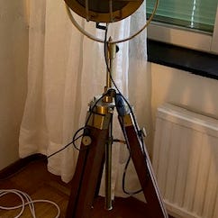 Säljer en golvlampa med tre lampskärmar som ger fint, mjukt och mysigt ljus. Passar perfekt i vardagsrum, sovrum eller läshörna. Lampan har stabil fot och armar/skärmar som går att vinkla så du kan rikta ljuset som du vill.