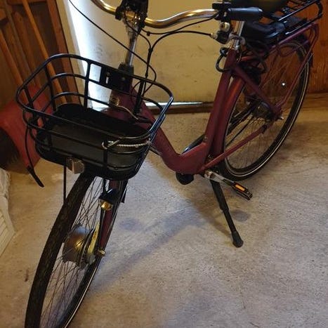 Cykeln fungerar bra men behöver nya däck (hjul).