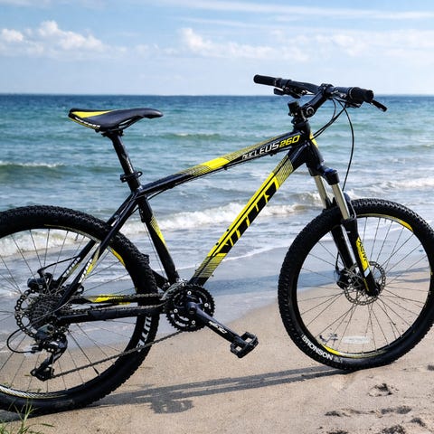 Säljer en Vitus Nucleus 260 hardtail-mountainbike i snygg svart/gul design. En robust och lättkörd MTB som passar både till grusvägar, skogsstigar och vardagscykling.