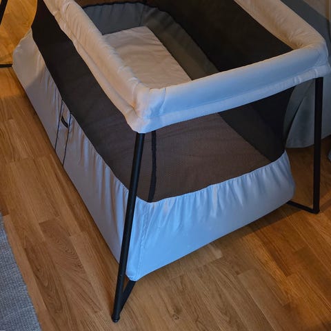 Resesäng från BabyBjörn, funkar bra för rymningsbenägna småbarn.
