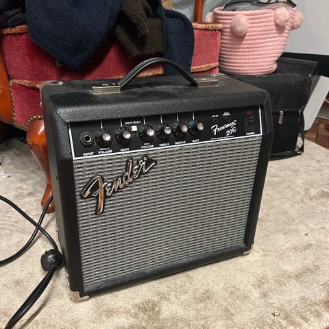Säljer en Fender Champion 40 i fint skick. Perfekt som övningsförstärkare hemma, men har också tillräckligt med kraft för replokal och mindre gig. Lätt att ställa in bra ljud snabbt - från clean Fenderton till mer crunch/drive.