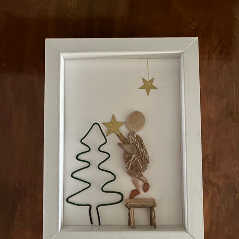 Jättefin broderad tavla med julmotiv. Har en röd träram runt sig. Mått 42 cm X 32 cm. Skickas ej, hämtas i Enskede. Så mysig med ett gammalt motiv!