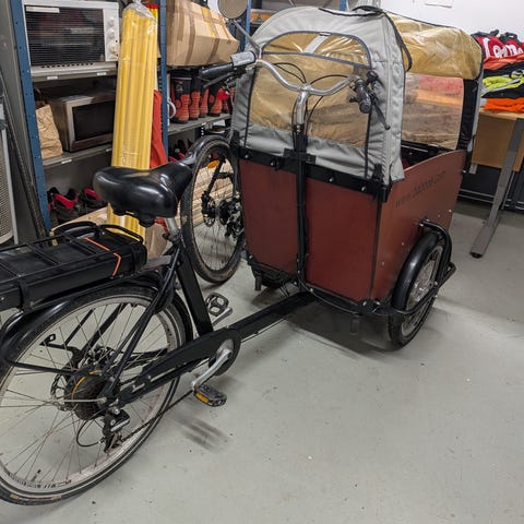 Säljer nu den här glatt dekorerade och sparsamt använda lådcykeln (utan el) med året-runt-däck och 7 växlar.