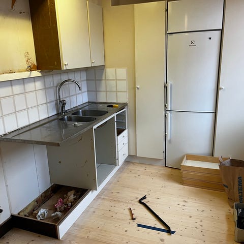 Diskbänk med ho, inkl kökskran med diskmaskinsavstängare. L 140x 60cm.