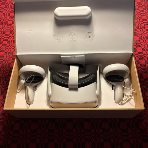 Oculus Quest 2 128GB i bra skick som fungerar felfritt. Säljes med div tillbehör enligt bild.