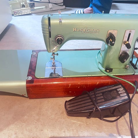 En svensktillverkad Husqvarna i mycket bra skick, blank och fin. Jag har gjort service med rengöring, smörjning, kontroll av funktioner och provsydd (se bild).Syr raksöm och zick zack.Klarar även tjockare tyg typ jeans tack vare sin reduktionsväxel !Levereras med alla orginaltillbehör,svensk manual och en oljeflaska i transportlåda. Kan skicka med Blocket.Maskinen finns i Skråmträsk 25 km från Skellefteå.