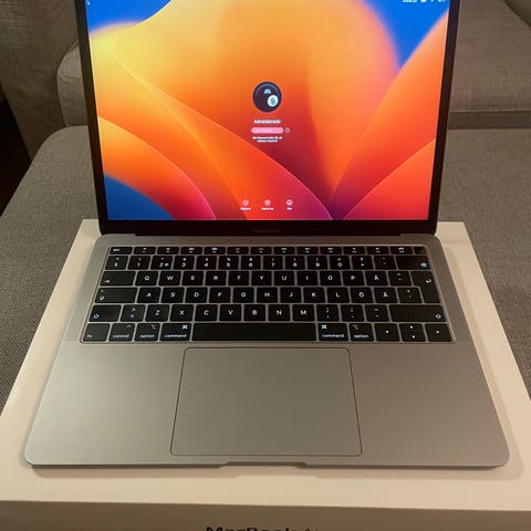 Apple MacBook Air Laptop med 13 tum skärm i nyskick, välvårdad, inte mycket använd. Jag köpte den ny så ett digitalt kvitto från Elgiganten ska finnas kvar.