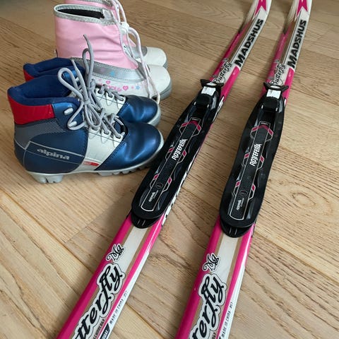 Skidor är mjuka, bindningar är justerbara och tåliga , pjäxor jätte komfortabel och varma,