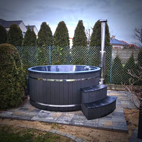 • Vedeldad kamin – värmer upp vattnet till 38–40°C på ca 3–3,5 timmar