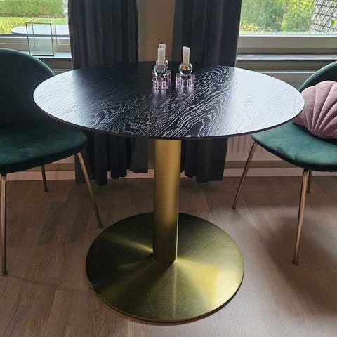 Jag säljer en matgrupp (Ines) köpt på Mio med 6 karmstolar (Selina). Bordet är av mörkt ekträ och stolarna av sammet i beige färg. I mycket bra skick, säljes pga platsbrist. Hämtas i Malmö