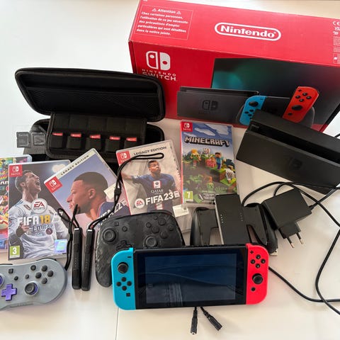 Komplett Nintendo Switch med spelet Minecraft och väska till, det är Nintendo Switch 1 Version 2 som innebär längre batteritid mm