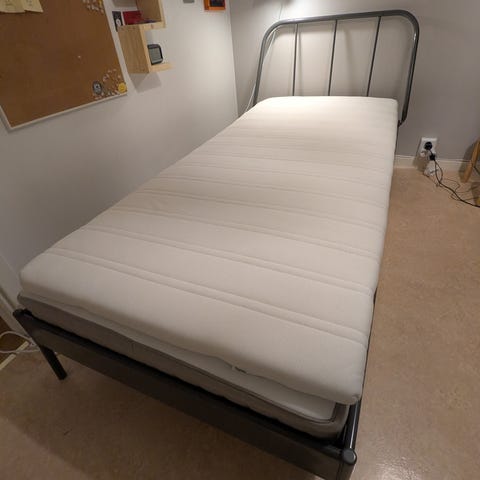 Säljer nu sängen som är i princip helt ny. Köpt under hösten och har pendlat fram tillbaka mellan Dalarna och Skåne.