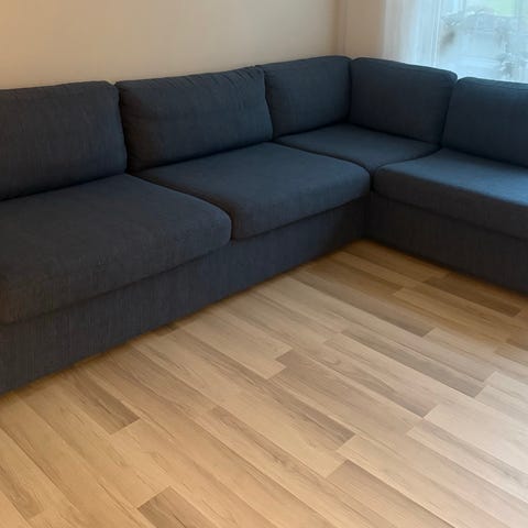 Säljer stor, familjevänlig soffa med divan.