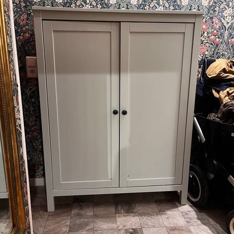 Skåpet kan vid transport delas i två delar där överdelen med speglar mm är en del och underdelen med skåp o sidohyllor är en annan del.