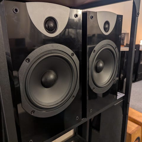 Utrustad med ett långslagigt 8-tums baselement, dubbla 5,25-tums mellanregister och en 1-tums soft dome diskant.