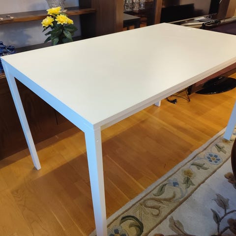 Litet och smidigt matbord i en vit simpel stil. Går att ta loss benen för enkel transport.