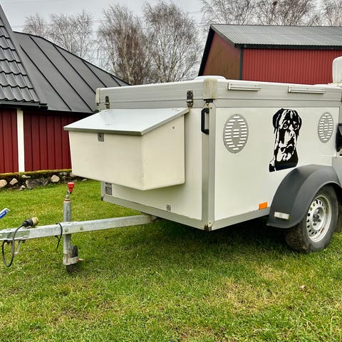 2022 års modell. 4 boxar, belysning inne i boxar samt förvaringsutrymmet uppe. fläkt, Reg nr FDB 60C . helt nya däck. mkt fint skick! Finns i Bor, värnamo kommun Tele 073-248 94 89 Mari.