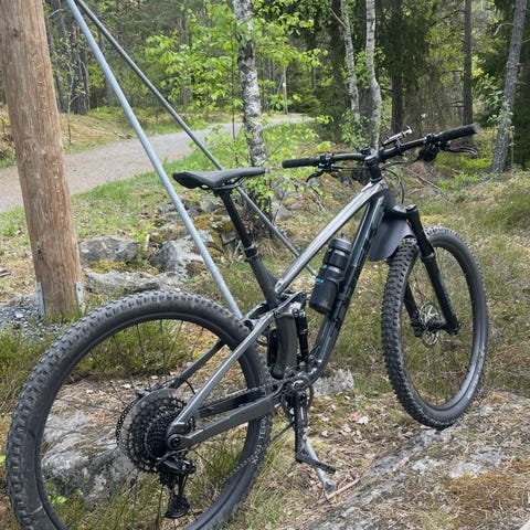 Sonen har växt ur sin heldämpade cykel, Trek Remedy 7 ramstorlek Small.