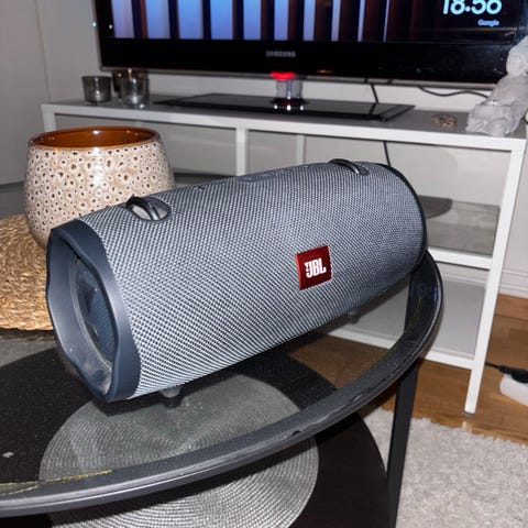 JBL Xtreme 3 Bluetooth-högtalare med camouflagemönster. Levererar grymt bra ljud och perfekt för att ta med på utflykt. Säljer då den inte används. Högtalaren har bärrem för enkel transport och är utrustad med en equalizer för exempelvis justering av bas. Detta görs via appen ”JBL Portable”. Finns både micro- och A USB-portar för laddning och anslutning (kan fungera som powerbank).