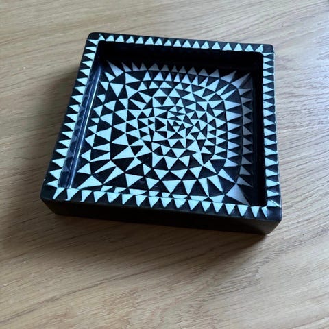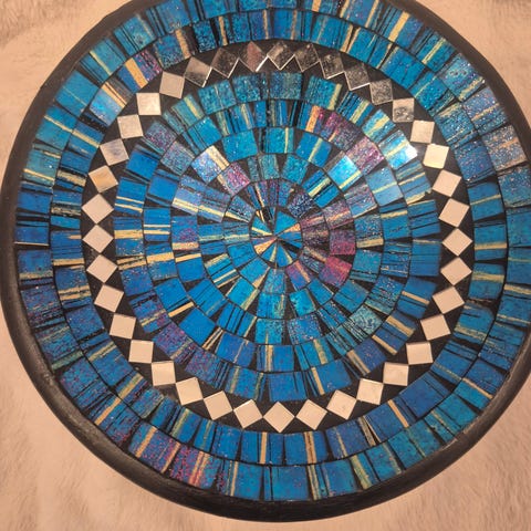 Spegel från 1970-talet. Några små glasrutor är lösa och kan sättas på plats. Medföljer i en påse om man vill fixa till detta.