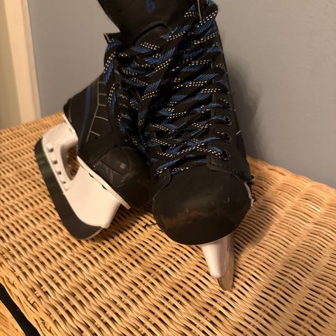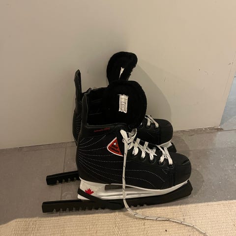 Ishockeyskridskor i storlek 37-40. Skorna har snörning och spänne för justerbar passform.
