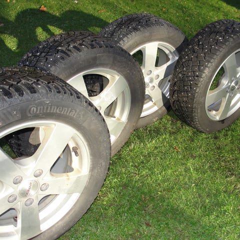 4 bra odubbade vinterdäck med alufälg orginal till Audi A3. Passar säkert även annan bilmodell. Ca 5-6 mm.