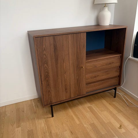 Säljer mitt fina skåp HALMSTAD från Jysk pga av flytt. Lite skavanker i bakkant (se bild) men syns knappt.