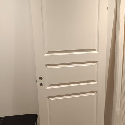 Här har du chansen att få ta över en mycket fin massiv innerdörr! Varsamt använd. Säljes pga renovering. Gångjärn och låskista ingår.