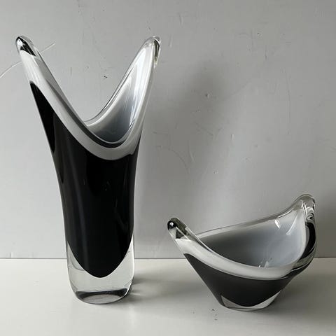 Snygg matt vit glasvas ca 21 cm hög 5,5 cm i diameter. Troligtvis Wiktor Berndt design.