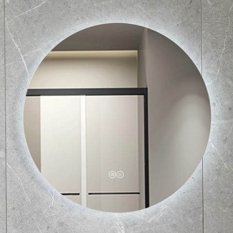 Badrumsspegel rund 80 cm, med LED-belysning.