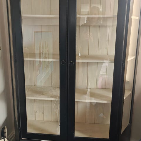 Säljer nu vårt superfina vitrinskåp som är lätt använd. Fullt fungerande dörrar och inga skador på glas mm.