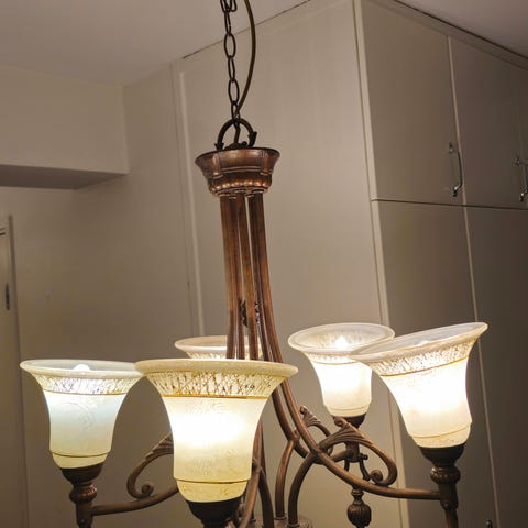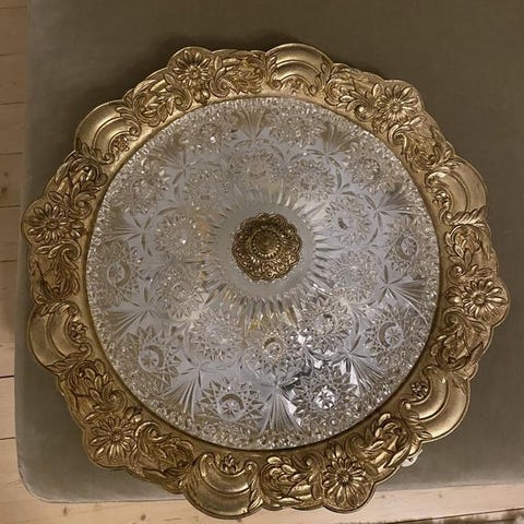 Mässing, teak & frostade glaskupor, 1900-talets mitt.