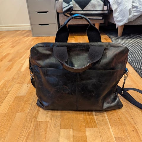 Tiger of Sweden Messengerväska i brunt. Väskan har justerbar axelrem och flera fack för förvaring. Tillverkad av läder med textilfoder. Ca 38x28x7,5-11cm