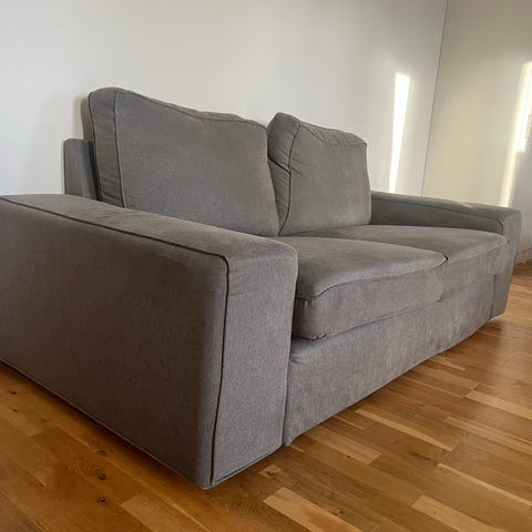 Mycket bra soffa som fortfarande behåller sin stuns i kuddar och ryggstöd. Visst slitage förekommer. Skön!